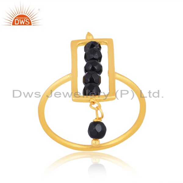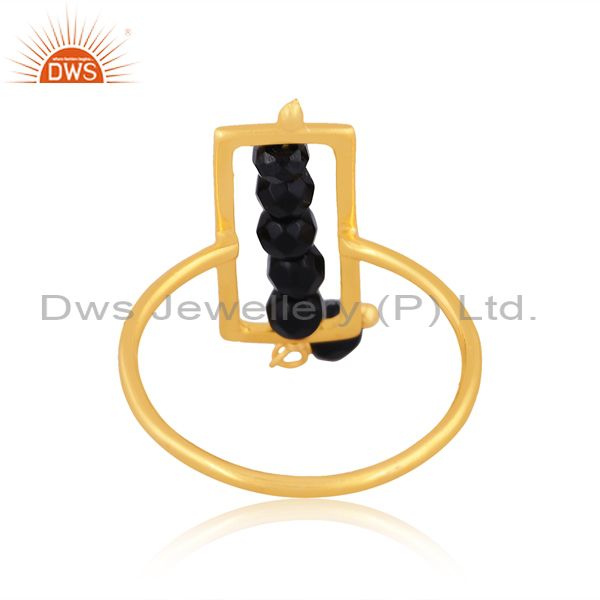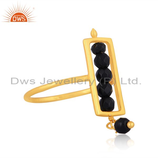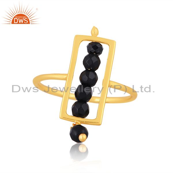 Black Onyx Set Gold On Silver Rectangle Charm Handmade Ring