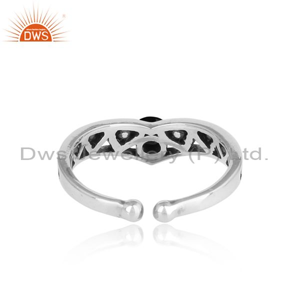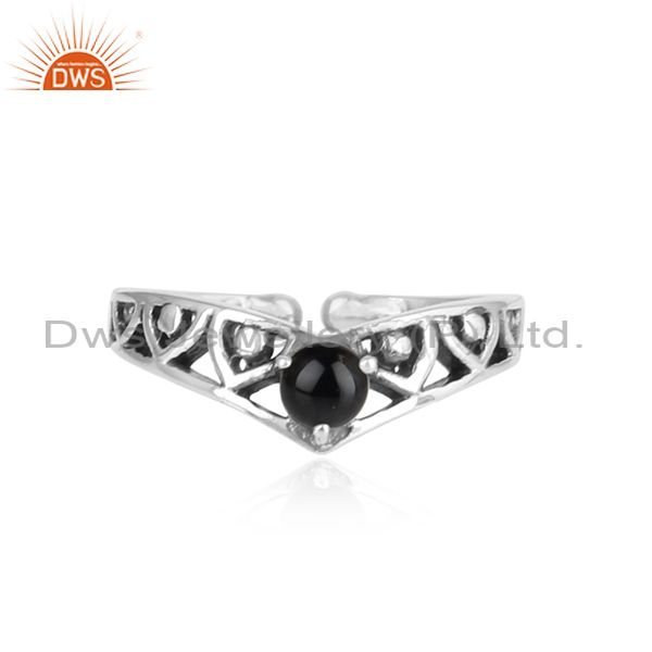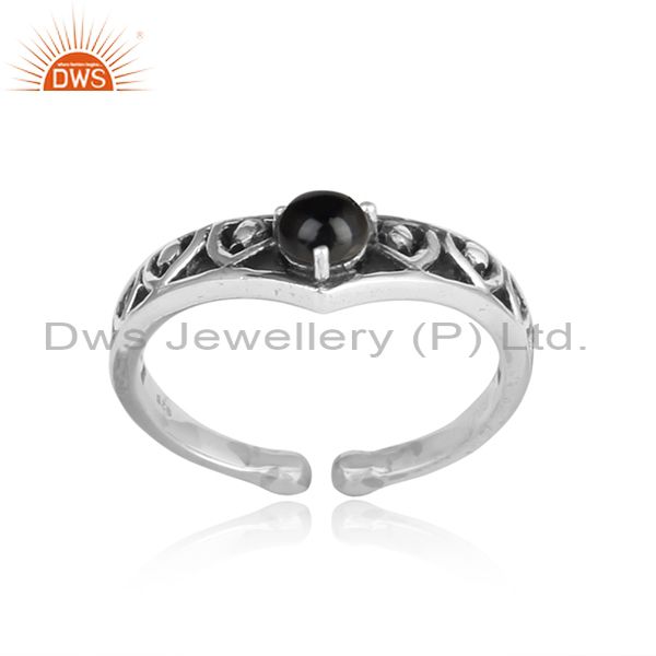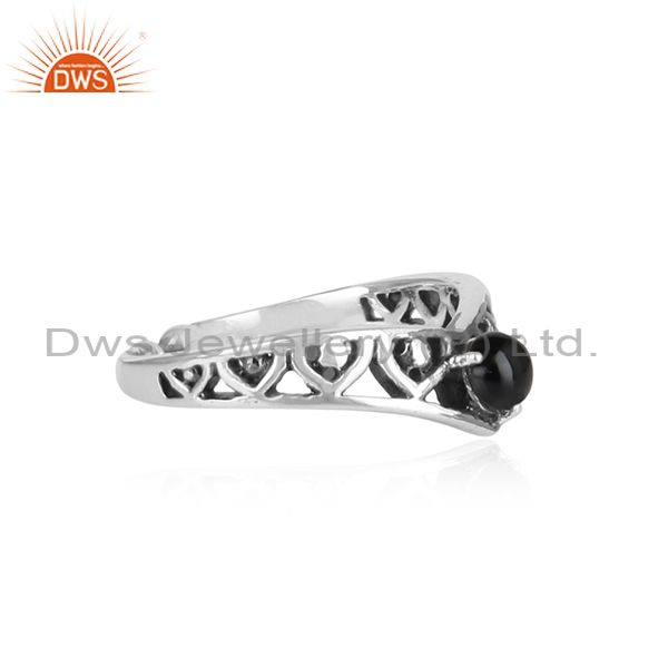 Black Onyx Set In 925 Oxidized Silver Rustic Ring
