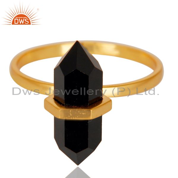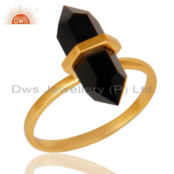 Black Onyx Terminated Pencil Gold Plated 92.5 Stelring Silver Wholesale Ring