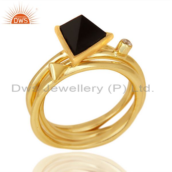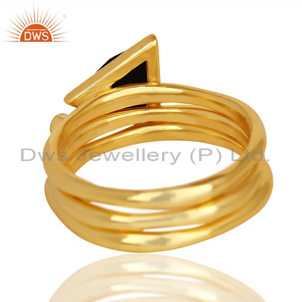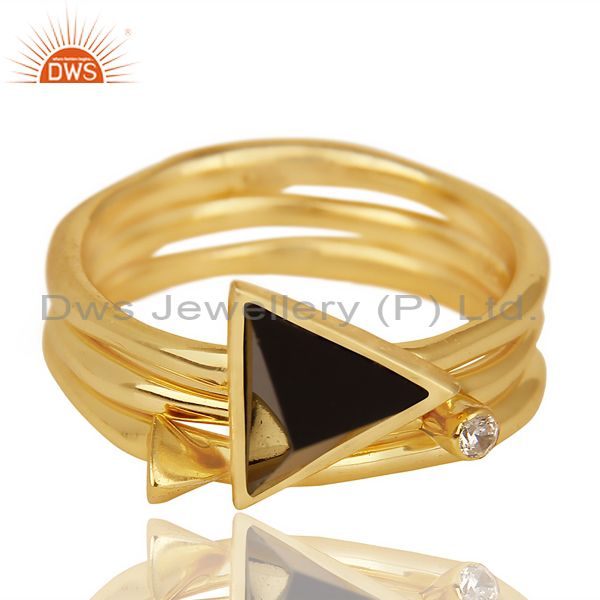Black Onyx Triangle Cut Gemstone Stacking 14K Gold Plated 92.5 Silver Ring