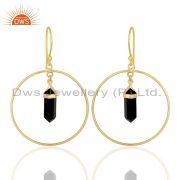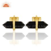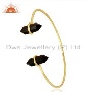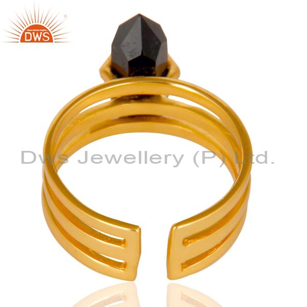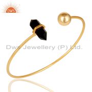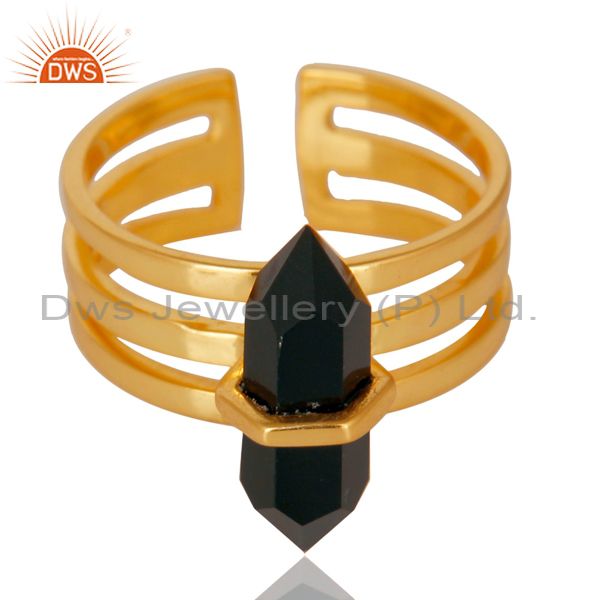 Black Onyx Wide Horn Adjustable 14K Gold Plated Sterling Silver Ring