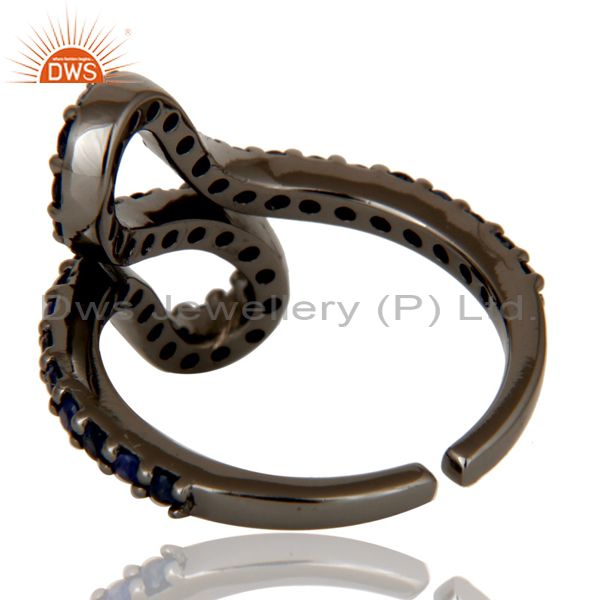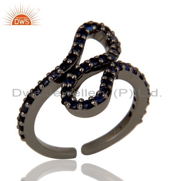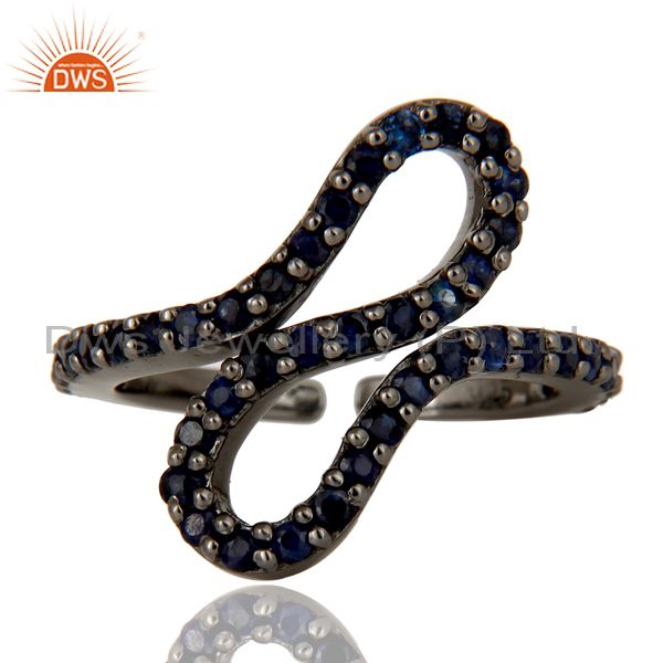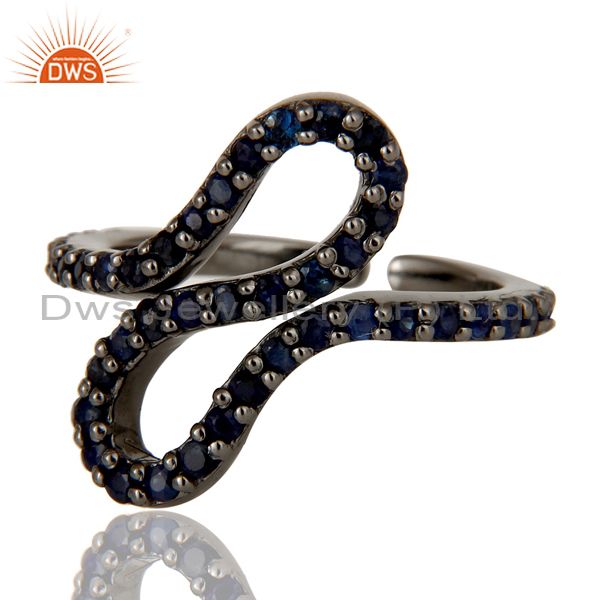 Black Oxidized 925 Sterling Silver Blue Sapphire Statement Midi Ring Jewellery