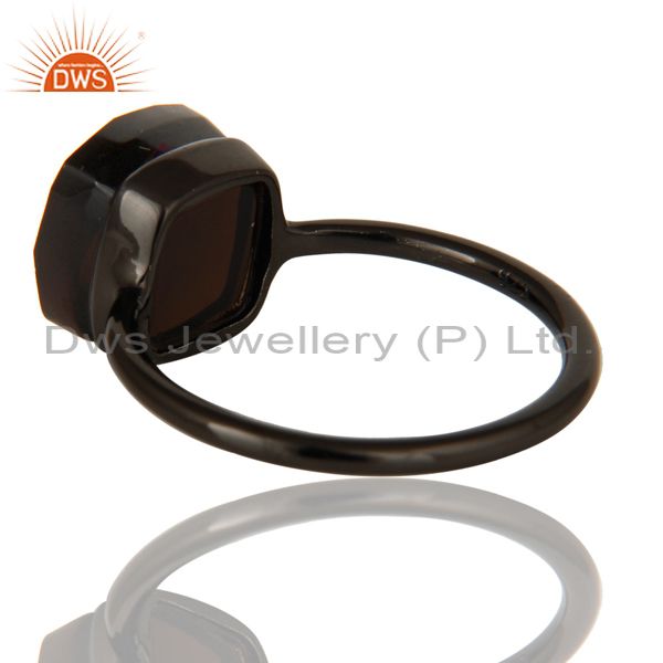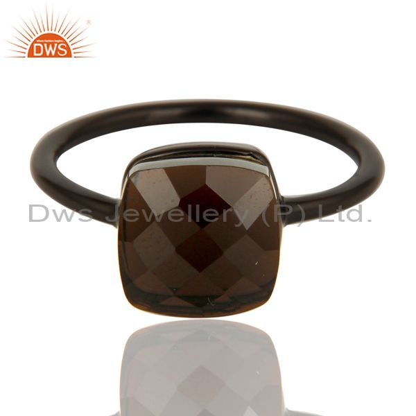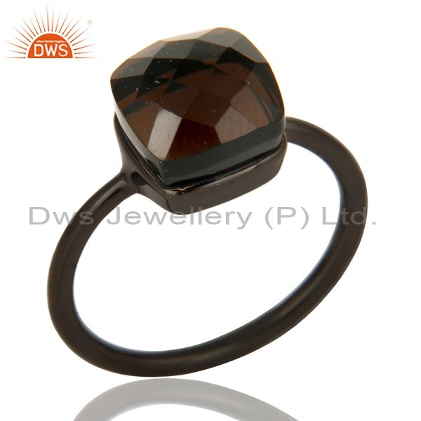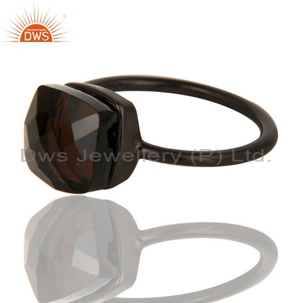 Black Oxidized 925 Sterling Silver Checkered Smokey Topaz Statement Ring