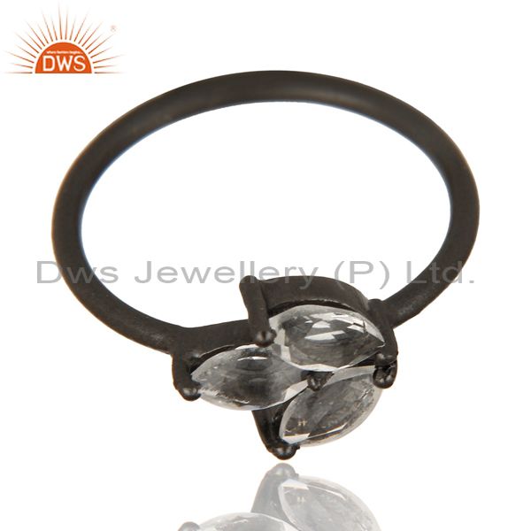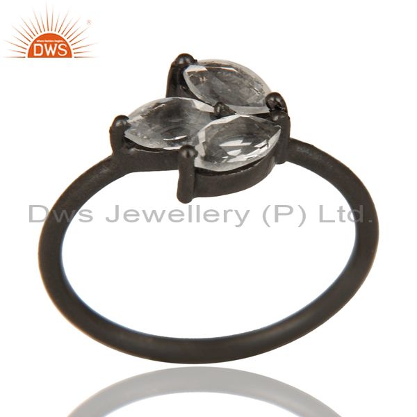 Black Oxidized 925 Sterling Silver Citrine Prong Set Gemstone Stackable Ring
