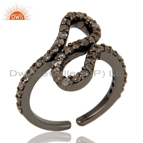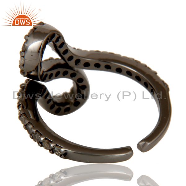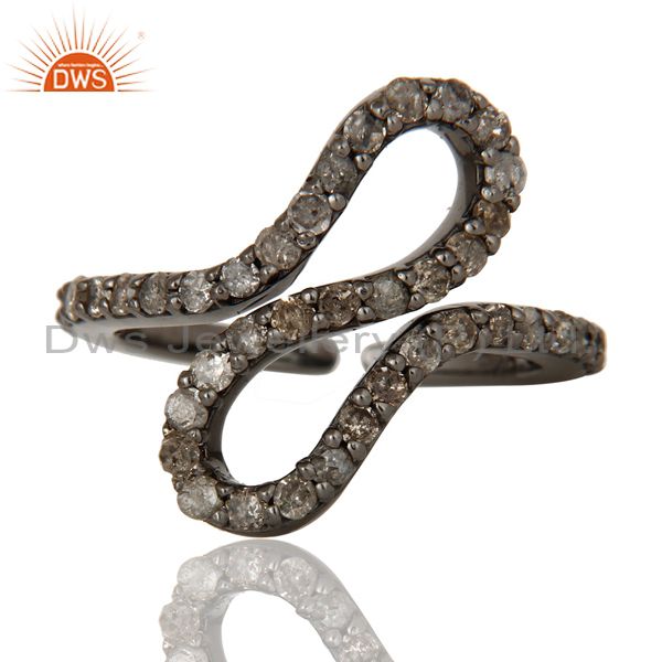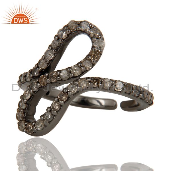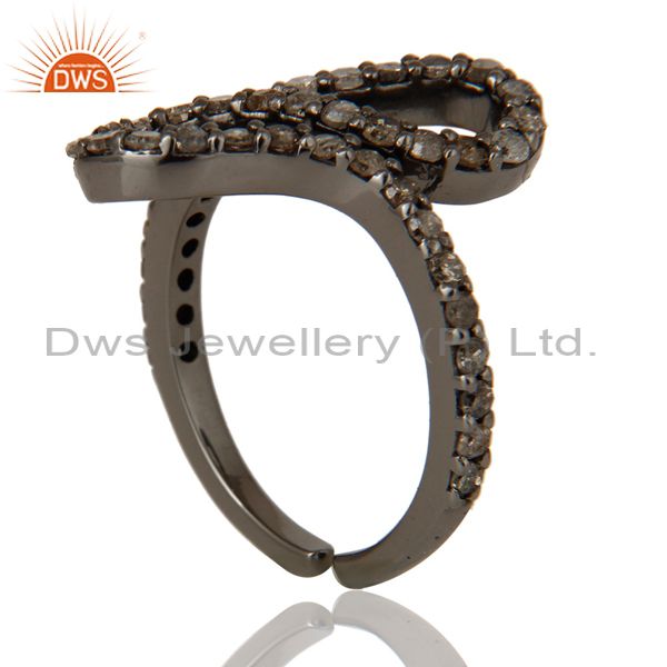 Black Oxidized 925 Sterling Silver Diamond Round Statement Midi Ring Jewelry