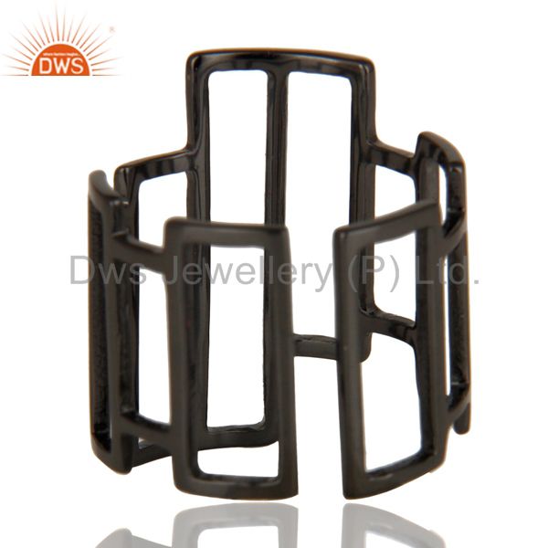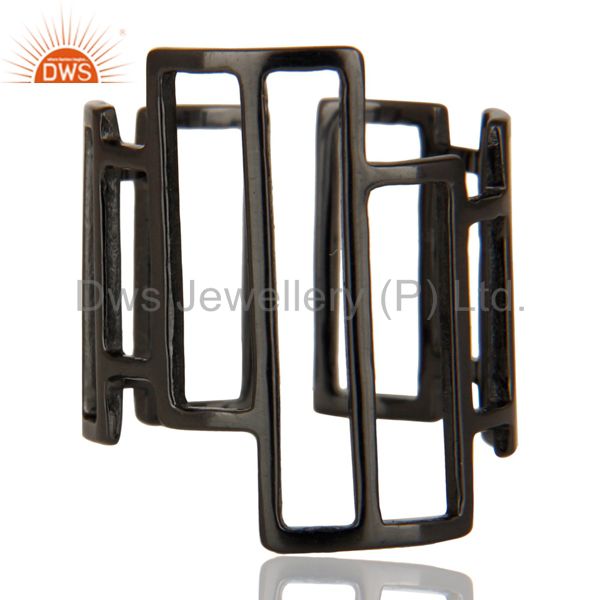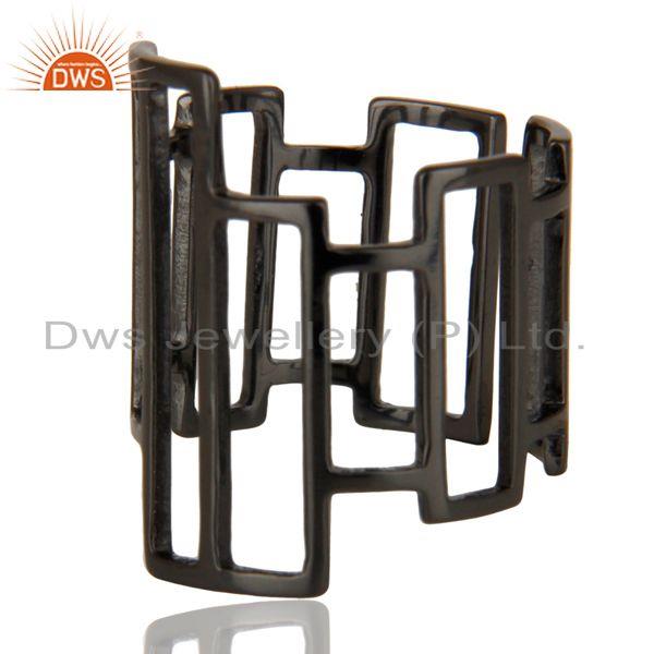 Black Oxidized 925 Sterling Silver Handmade Art Deco Fashion Cocktail Ring