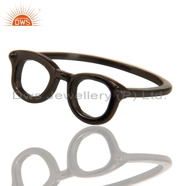 Black Oxidized 925 Sterling Silver Handmade Art Goggle Design Stackable Ring