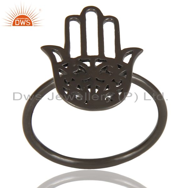 Black Oxidized 925 Sterling Silver Handmade Art Hand Design Cocktail Ring