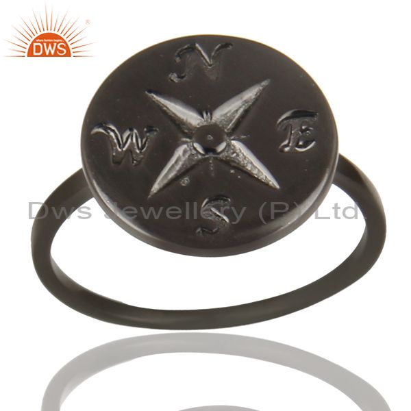Black Oxidized 925 Sterling Silver Handmade Astrology Design Cocktail Ring