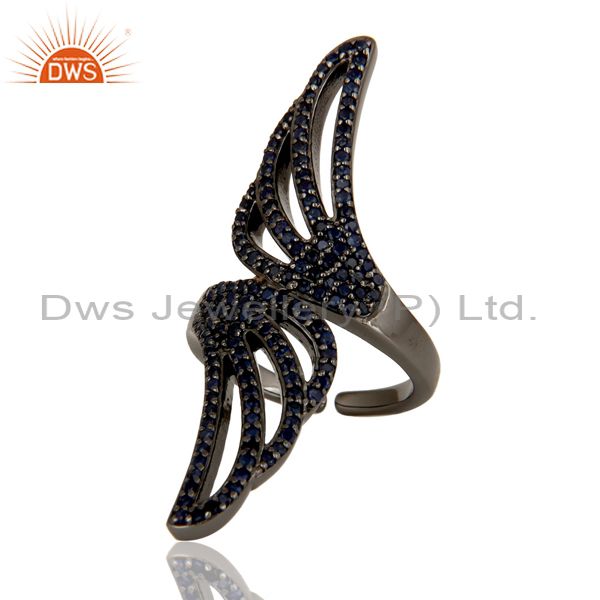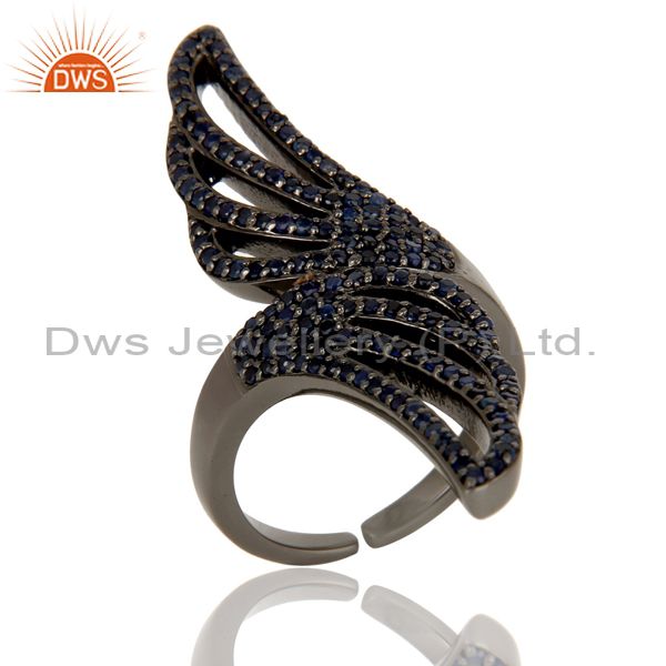 Black Oxidized 925 Sterling Silver Handmade Blue Sapphire Gemstone Midi Ring