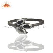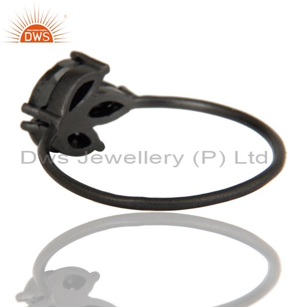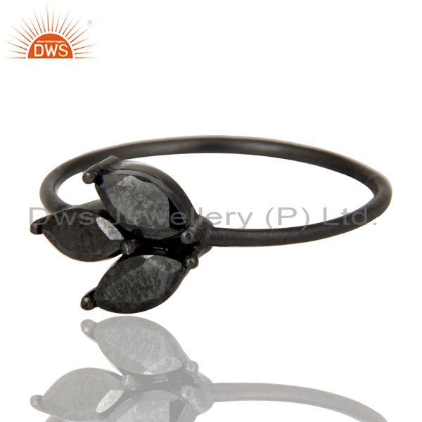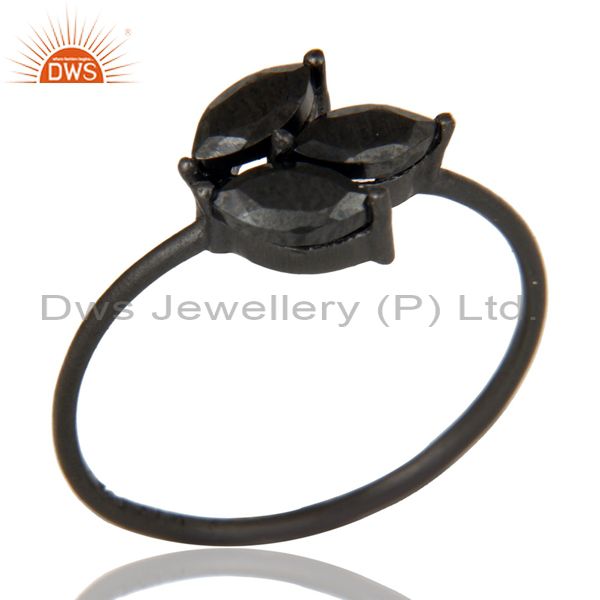 Black Oxidized 925 Sterling Silver Hematite Cut Prong Set Stackable Ring