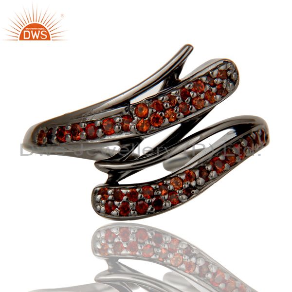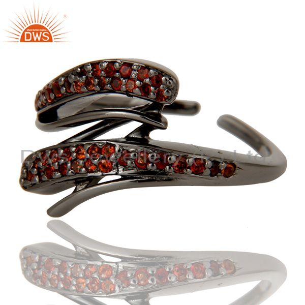 Black Oxidized 925 Sterling Silver Natural Garnet Midi Ring Gift Jewelry