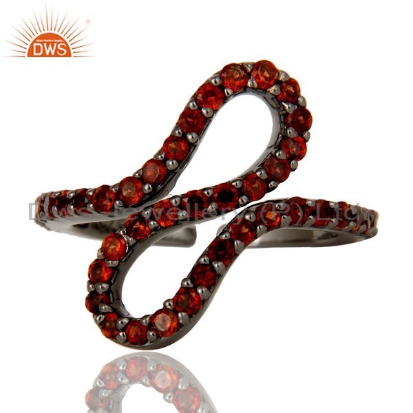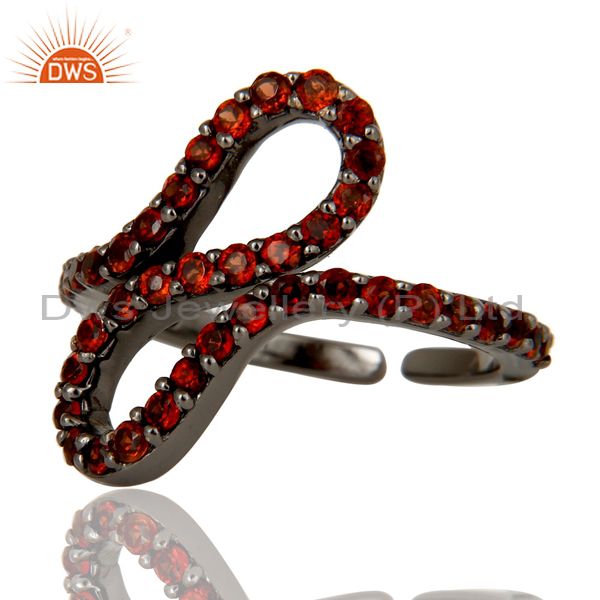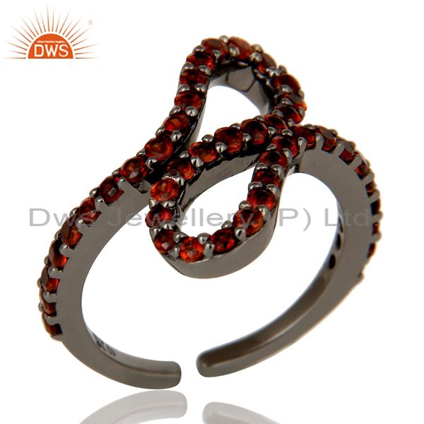 Black Oxidized 925 Sterling Silver Natural Garnet Statement Midi Ring Jewellery