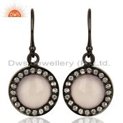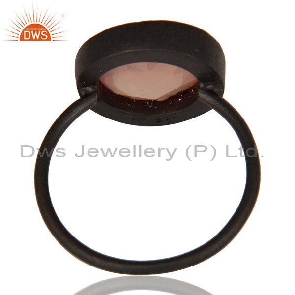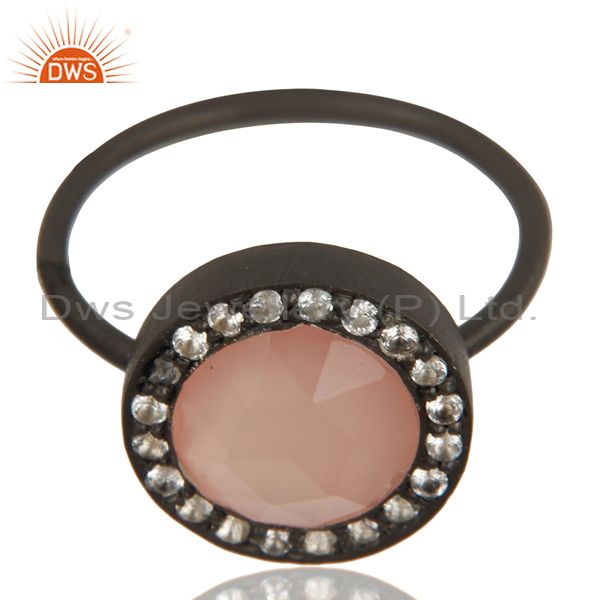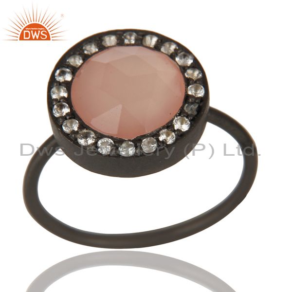 Black Oxidized 925 Sterling Silver Rose Chalcedony & White Topaz Cocktail Ring