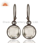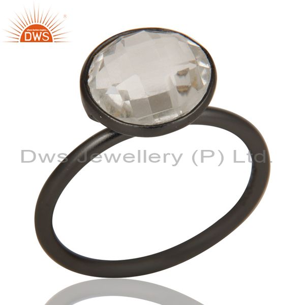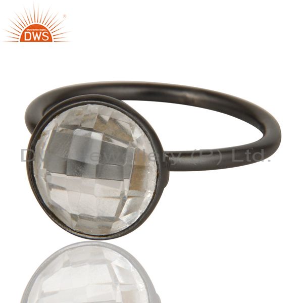 Black Oxidized 925 Sterling Silver Round Cut Crystal Quartz Stacking Ring