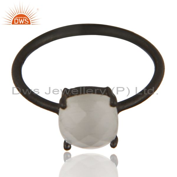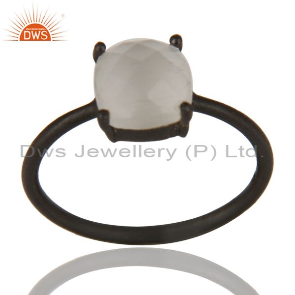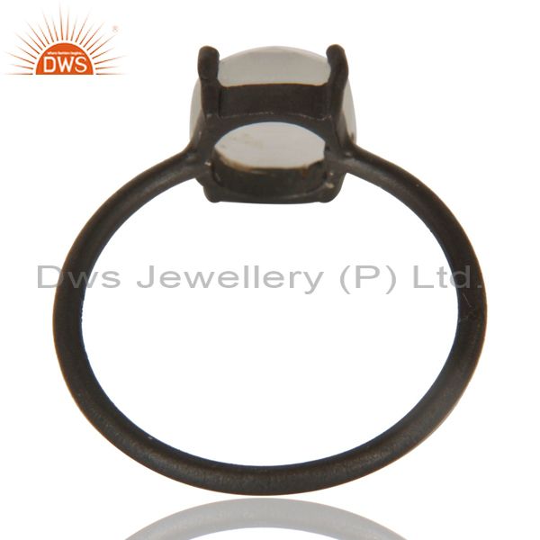 Black Oxidized 925 Sterling Silver White Moonstone Prong Set Stacking Ring