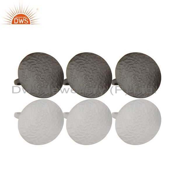 Black Oxidized Brass Floral Engraved Cocktail Ring Set Of Three Pieces