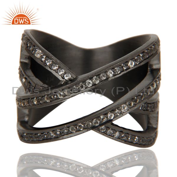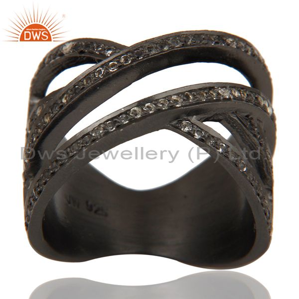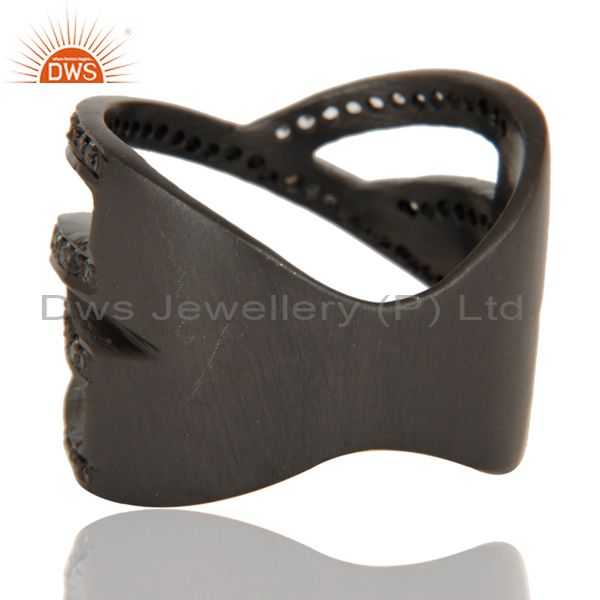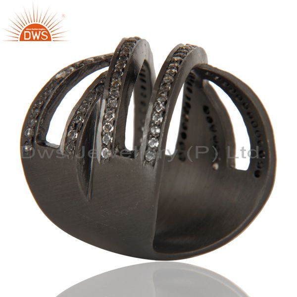 Black Oxidized Handmade Full Fil Statement Ring with White Topaz