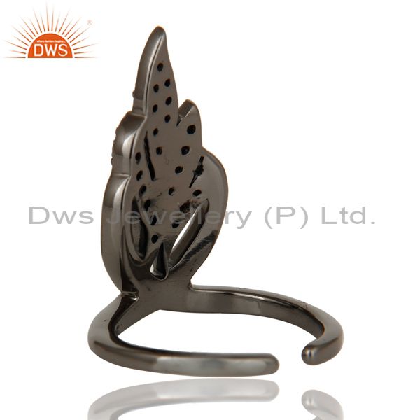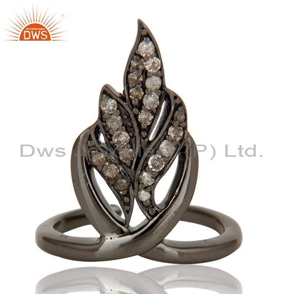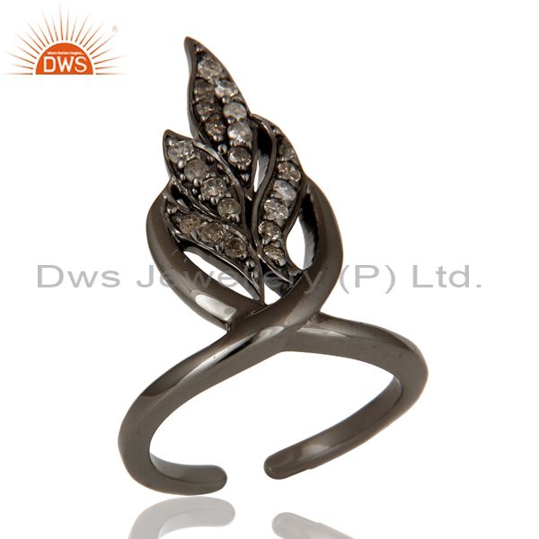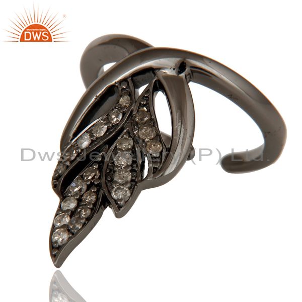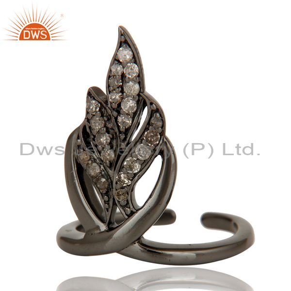Black Oxidized Sterling Silver and Diamond Leaf Design Midi Ring