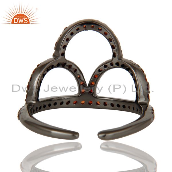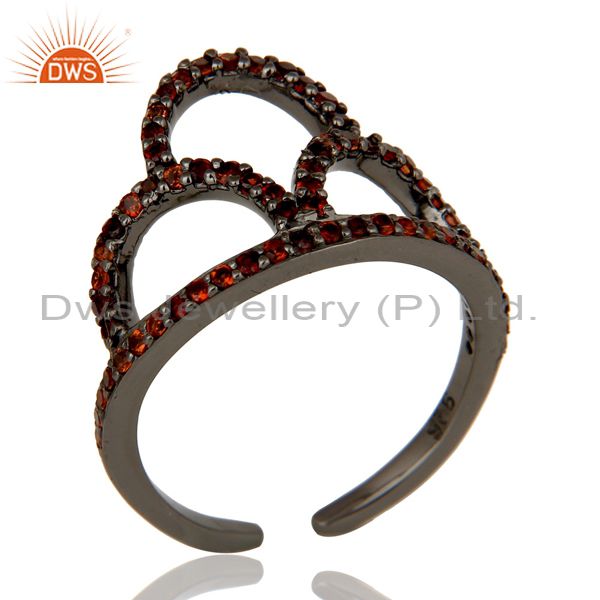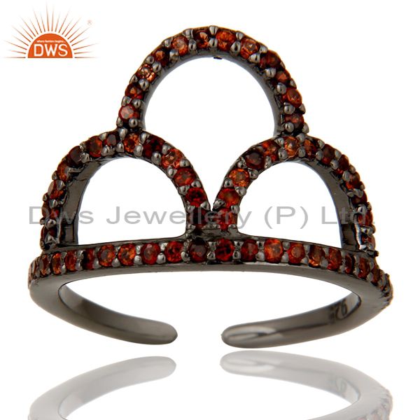 Black Oxidized Sterling Silver and Garnet Crown Design Midi Ring