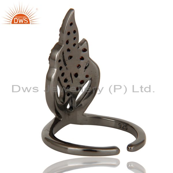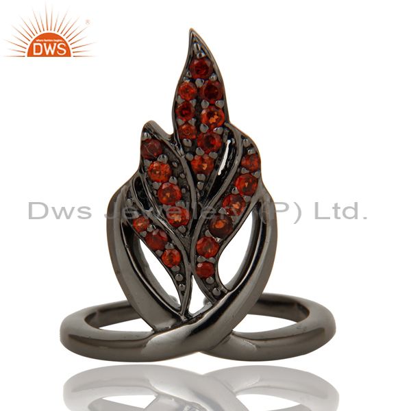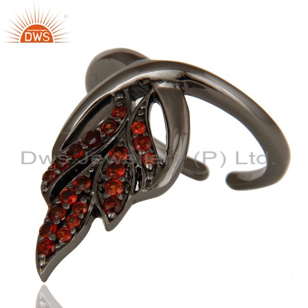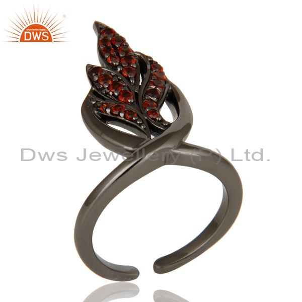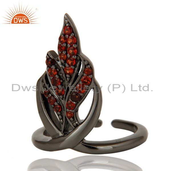 Black Oxidized Sterling Silver and Garnet Leaf Design Midi Ring