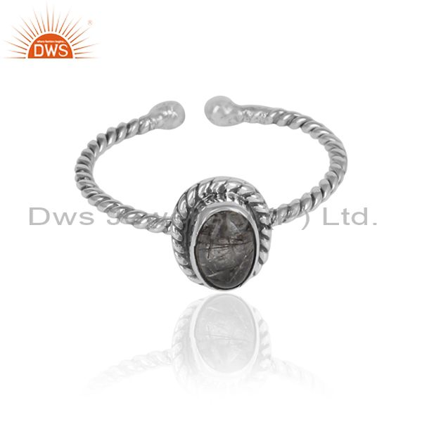 Black Oxidized Sterling Silver Black Rutile Gemstone Girls Rings