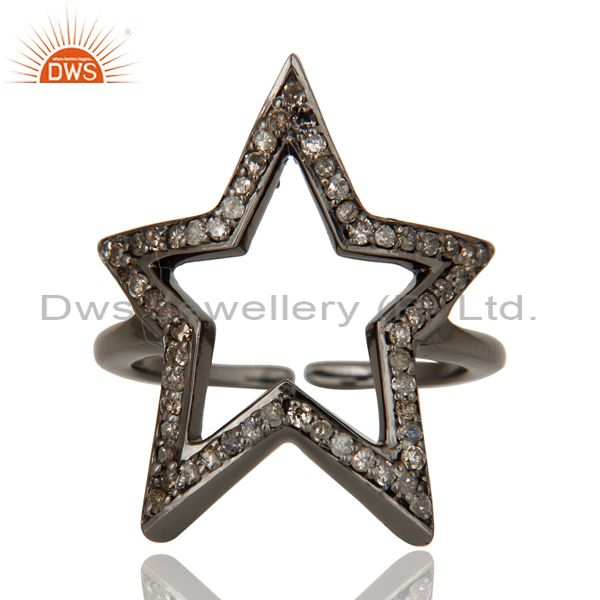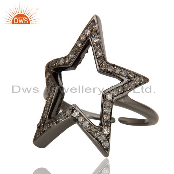 Black Oxidized Sterling Silver Diamond Rose Cut Designer Midi Ring Jewellery