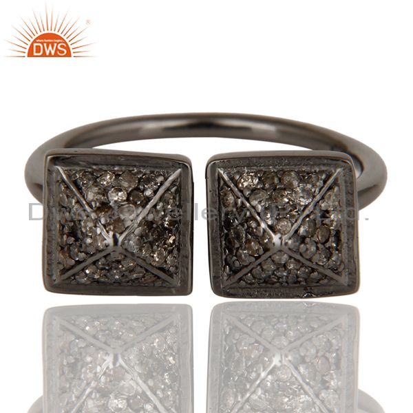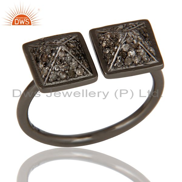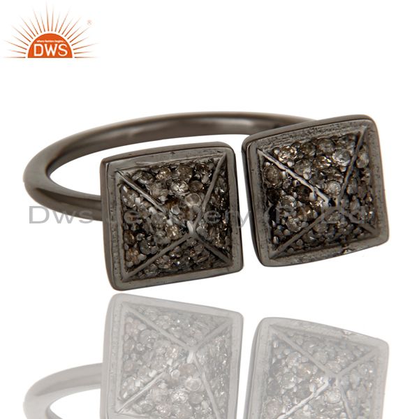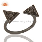 Black Oxidized Sterling Silver Pave Diamond Pyramid Shape Ring Statement Ring