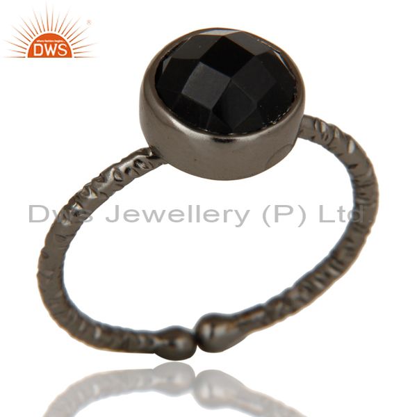 Black Oxidized Sterling Silver Simple Setting Ring With Black Onyx