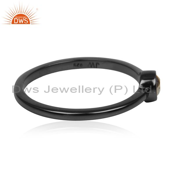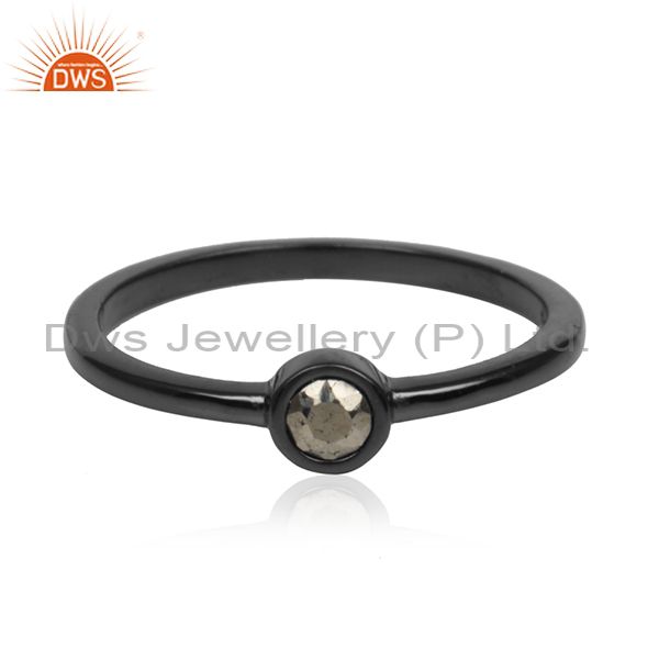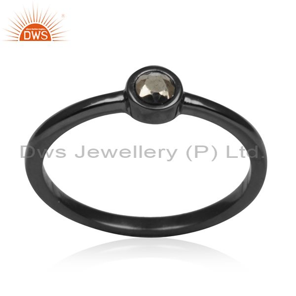 Black Rhodium Plated 925 Silver Pyrite Gemstone Handmade Ring Manufacturer India