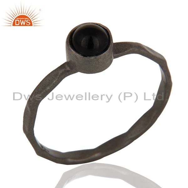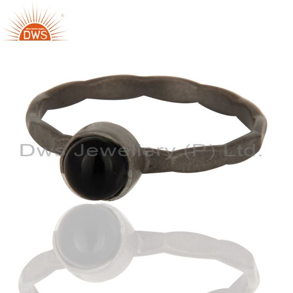 Black Rhodium Plated Sterling Silver Black Onyx Gemstone Stackable Ring