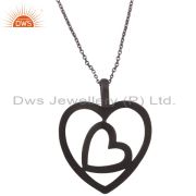 Black Rhodium Plated Sterling Silver Heart Design Engagement Ring
