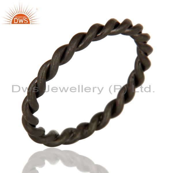 Black Rhodium Plated Sterling Silver Twisted Wire Ring Size 6