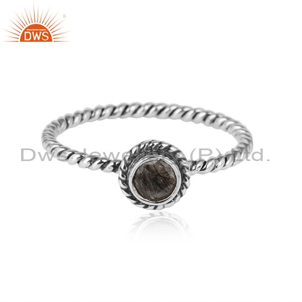 Black Rutile Gemstone Twisted Oxidized Sterling Silver Ring Jewelry