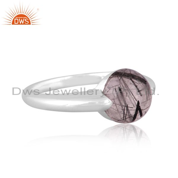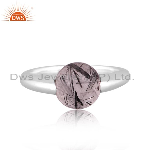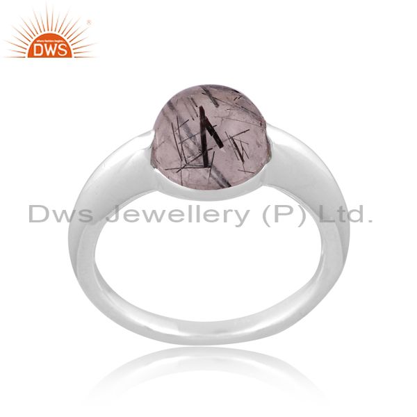 Black Rutile Set Fine 925 Silver Classic Band Style Ring