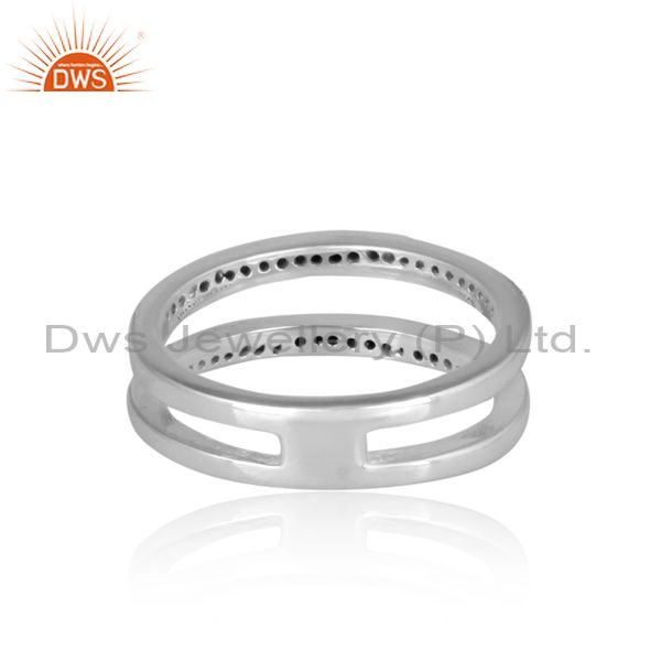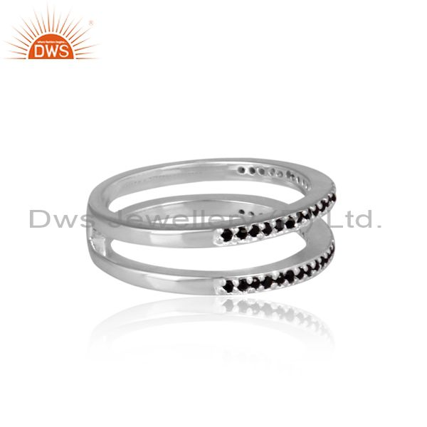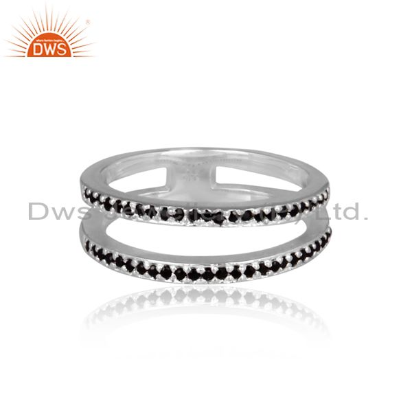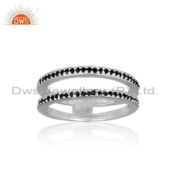 Black Spinal Set Fine 925 Sterling Silver Double Band Ring