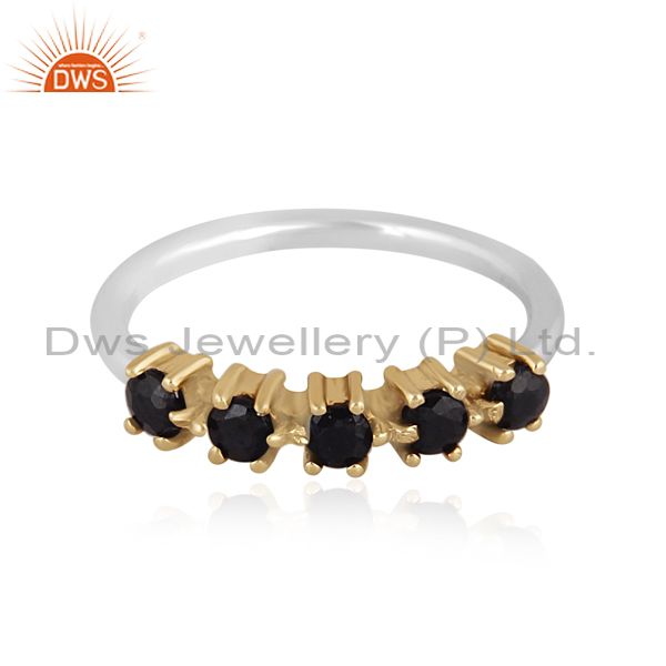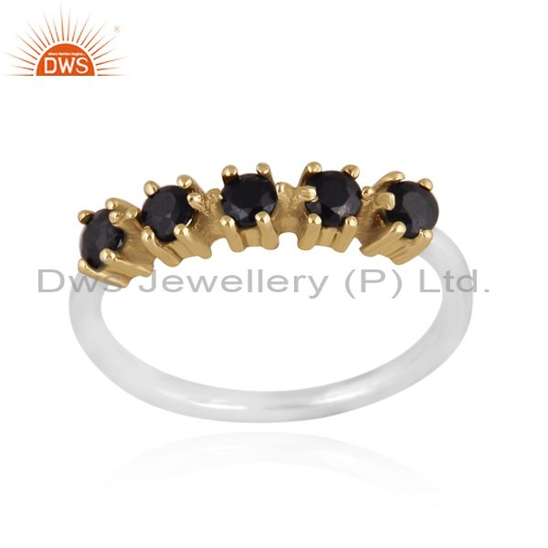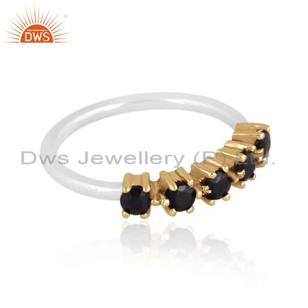 Black Spinal Set Gold On Fine Sterling Silver Designer Ring