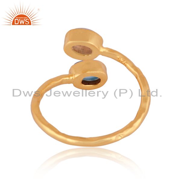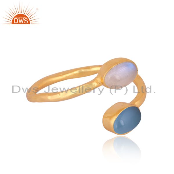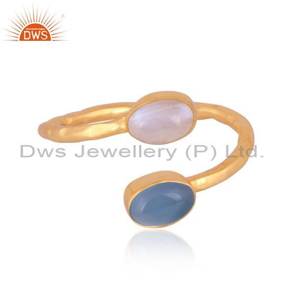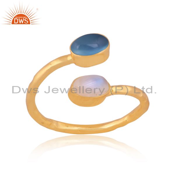 Blue Chalcedony And Rainbow Moon Stone Gold On Silver Ring