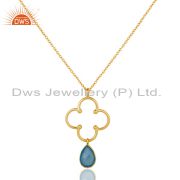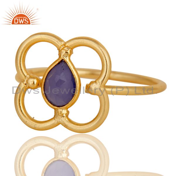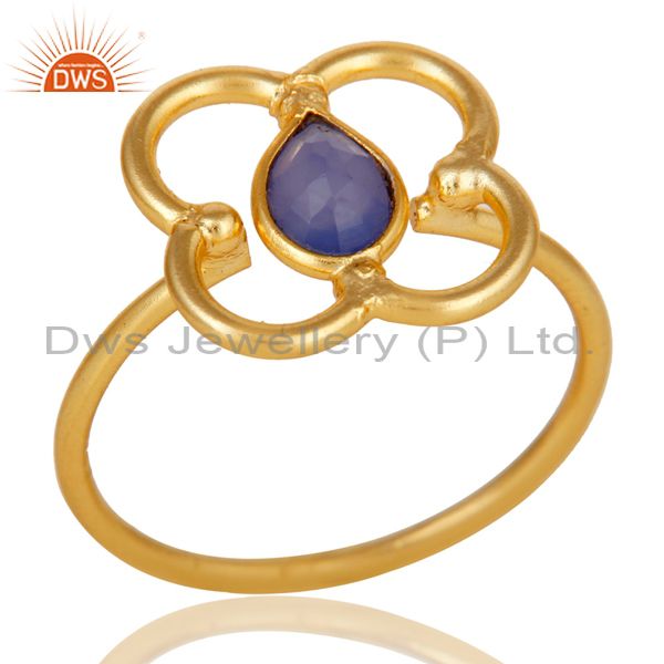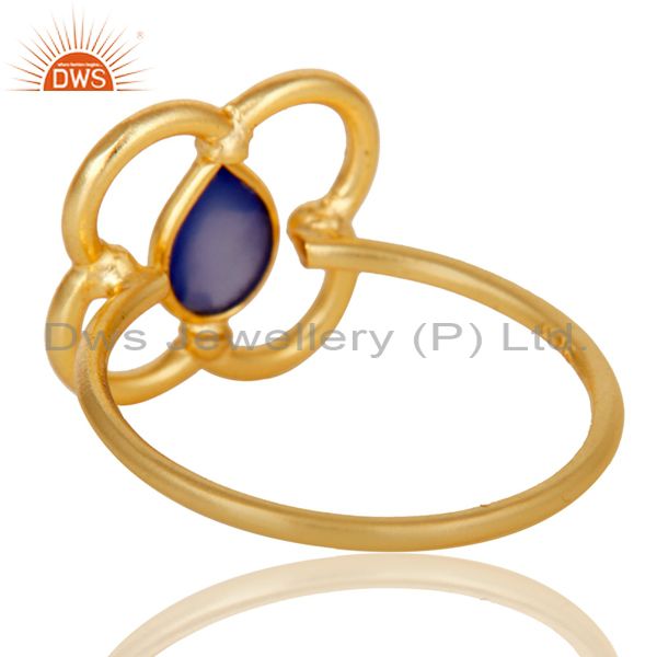 Blue Chalcedony Art Deco 18K Gold Plated Sterling Silver Designer Ring