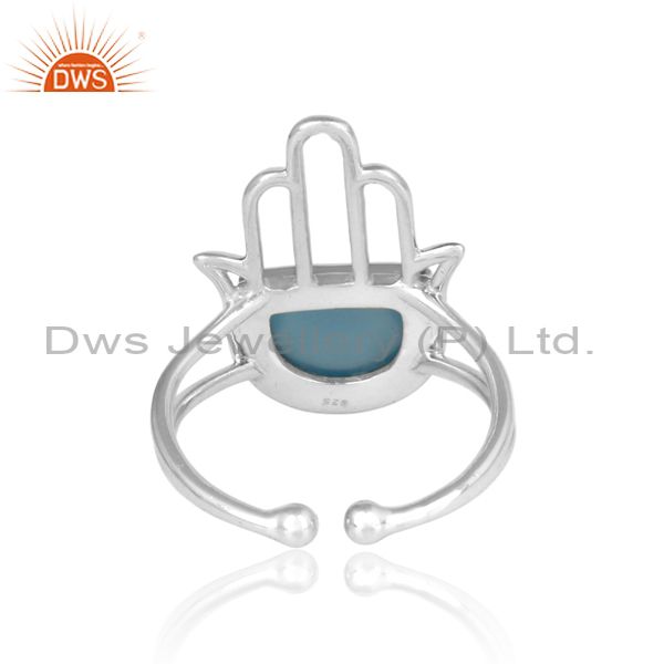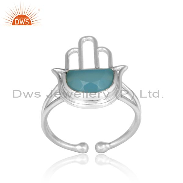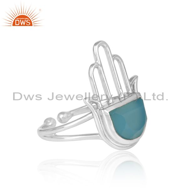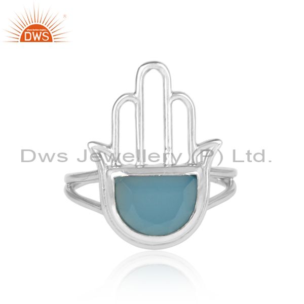 Blue Chalcedony Coin Fine Sterling Silver Hamsa Ring