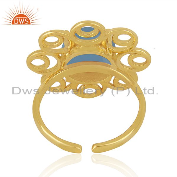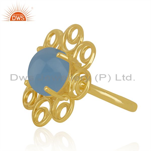 Blue Chalcedony Gemstone Gold Plated Silver Floral Design Ring Manufacturer