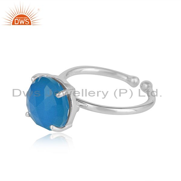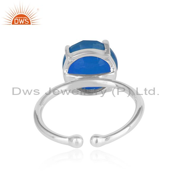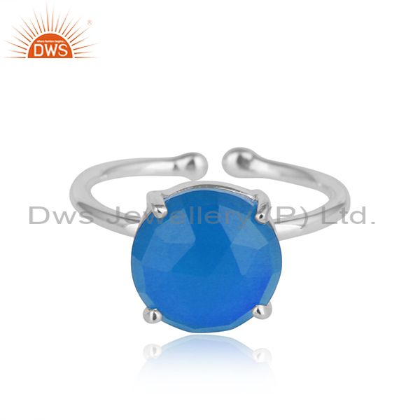 Blue Chalcedony Gemstone Prong Set 925 Sterling Silver Womens Rings