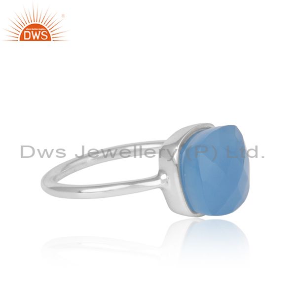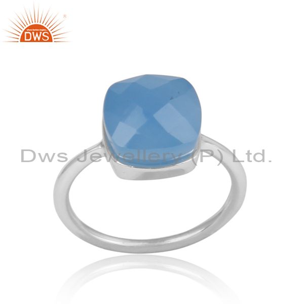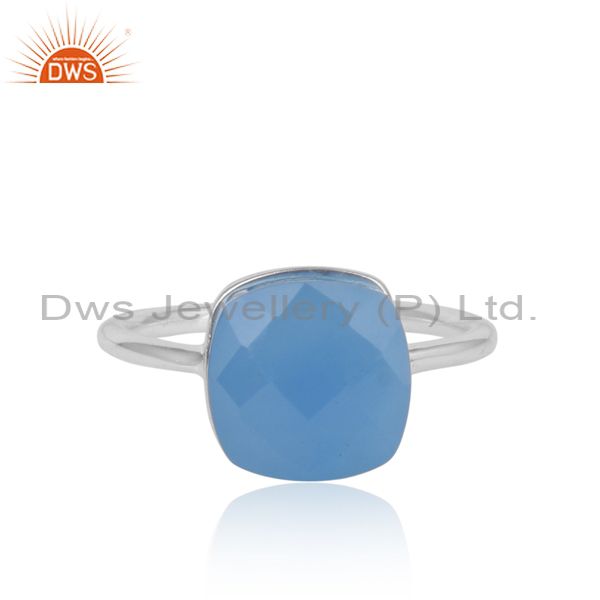 Blue Chalcedony Set 925 Fine Sterling Silver Handmade Ring