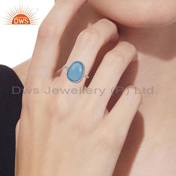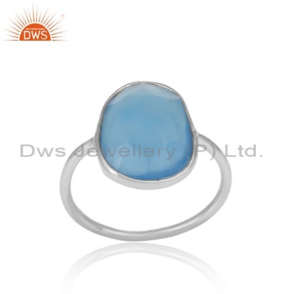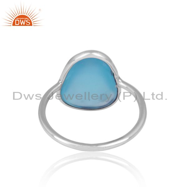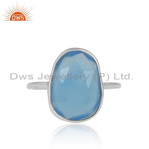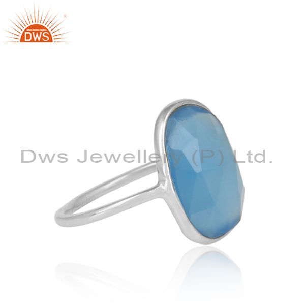 Blue Chalcedony Set Fine 925 Silver Casual Statement Ring