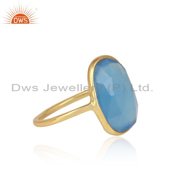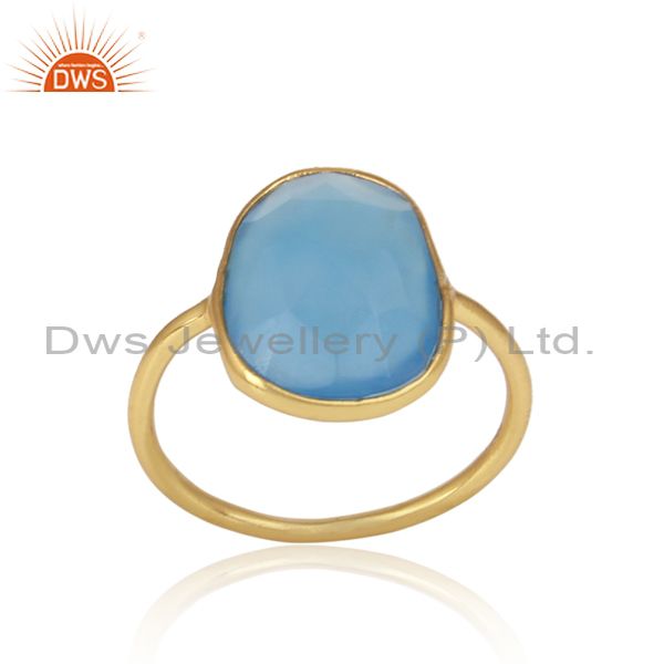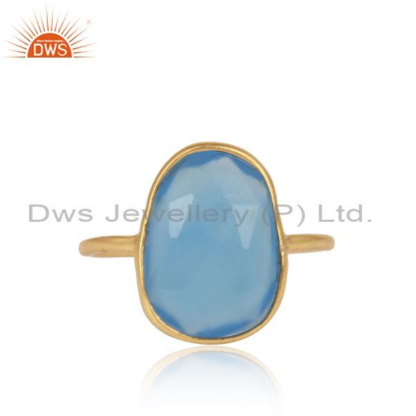 Blue Chalcedony Set Gold On 925 Silver Casual Statement Ring