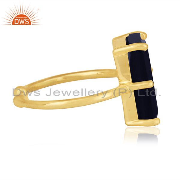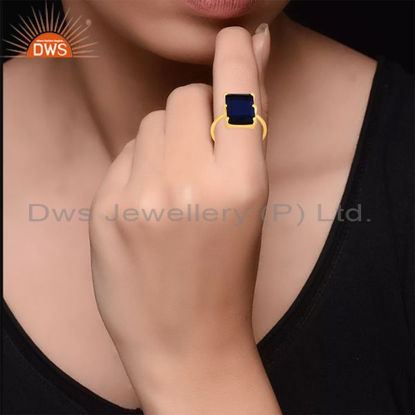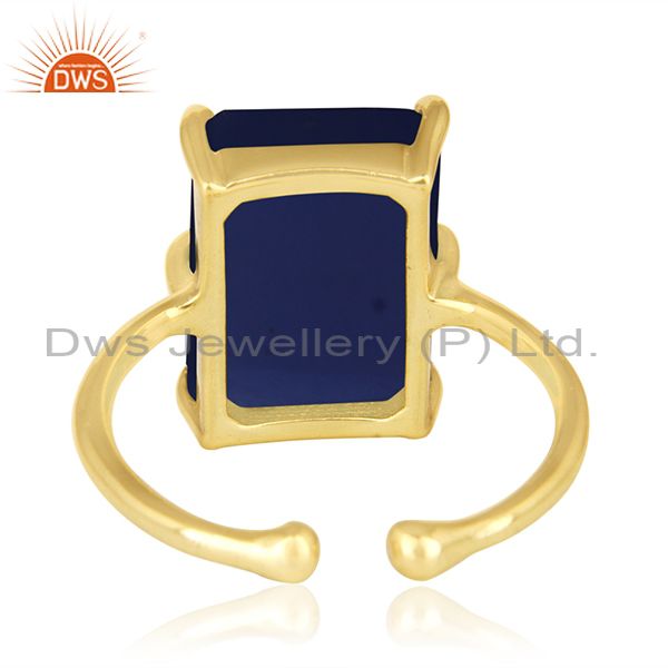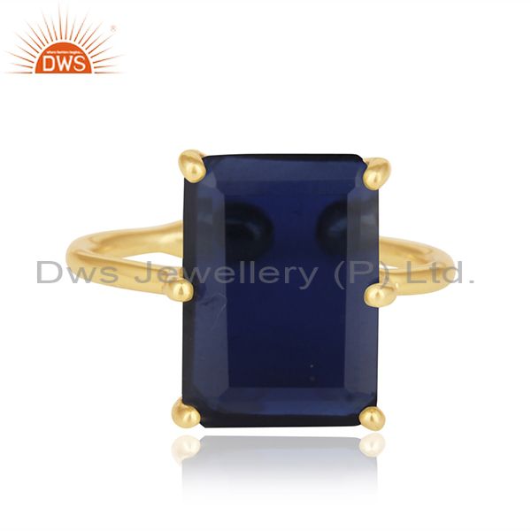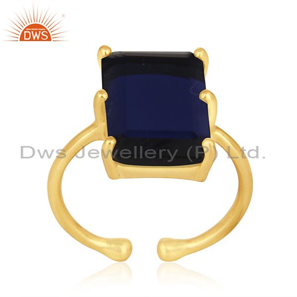 Blue Corundum Gemstone 925 Silver Gold Plated Adjustable Ring Wholesale