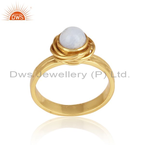 Blue Lace Agate Cabushion Wrapped Silver Gold Plated Ring