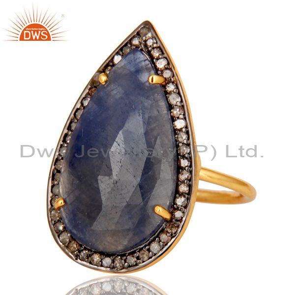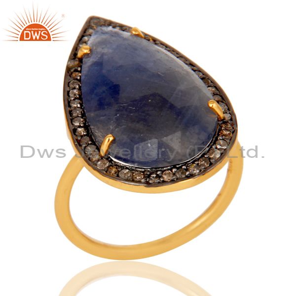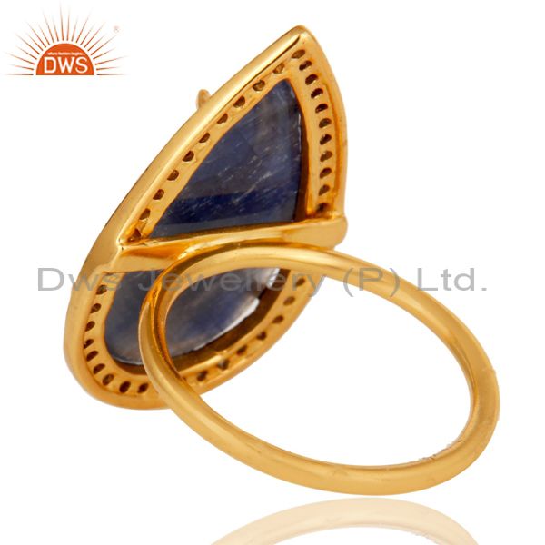 Blue Sapphire And Diamond Pave Set Gold Plated Sterling Silver Statement Ring
