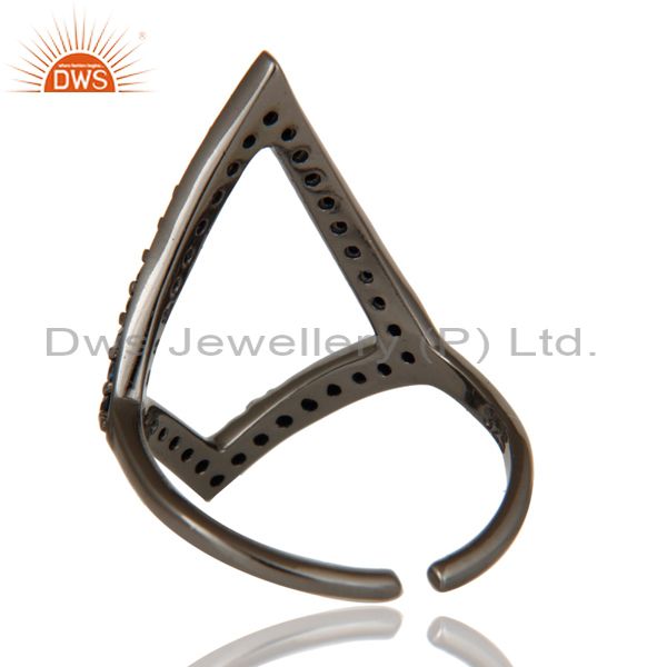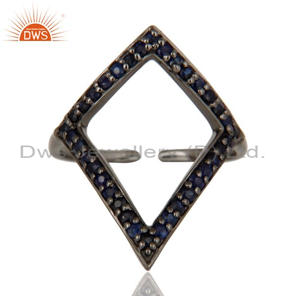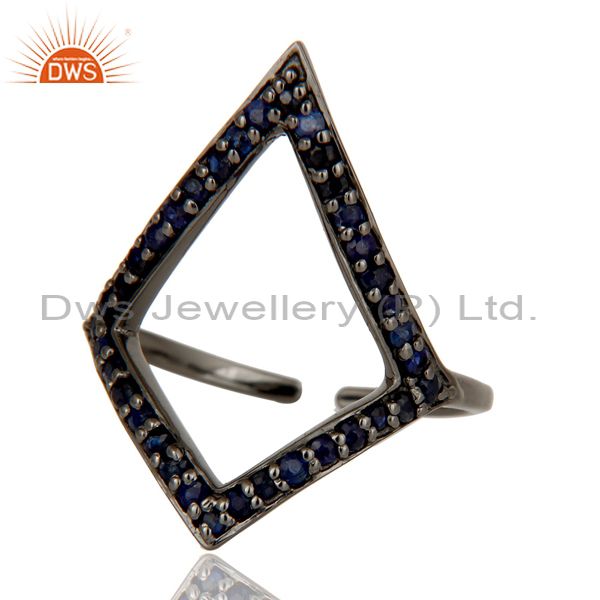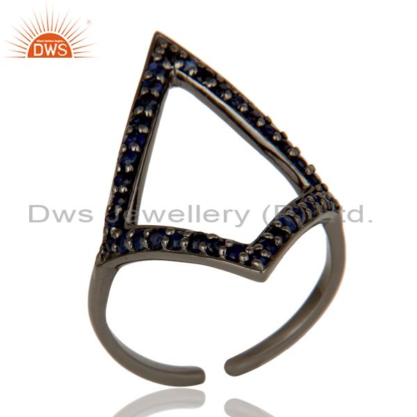 Blue Sapphire and Oxidized Sterling Silver Tringle Shape Midi Ring