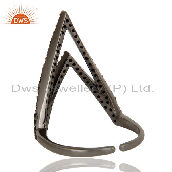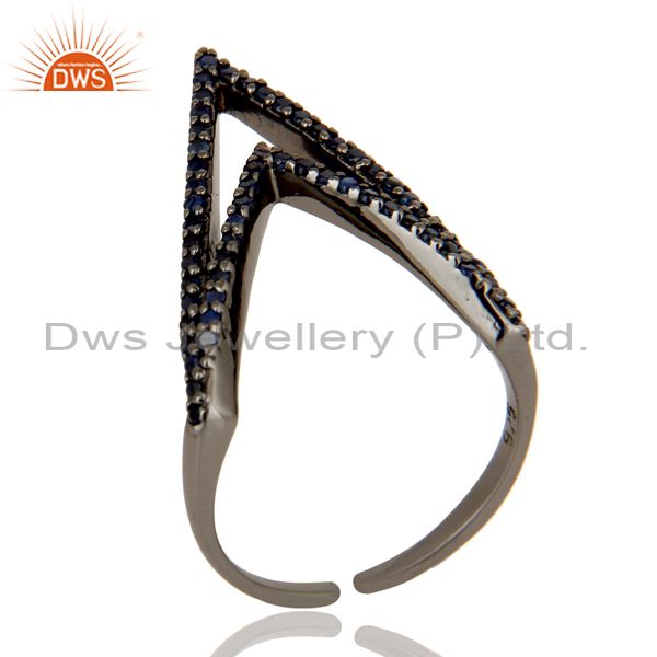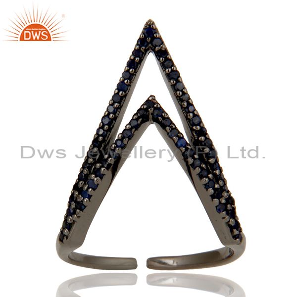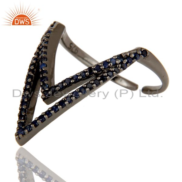 Blue Sapphire and Sterling Silver Black Oxidized Designer Midi Ring